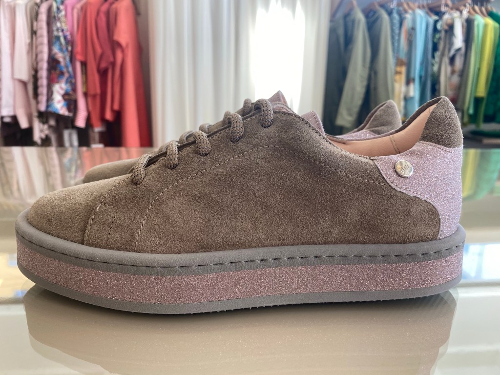Taupe – grau – und glitzer rosa = eine typische italienische Farbkombinationen 😍 mögen wir sehr und da dieser Sneaker von AGL ist, ist er an Bequemlichkeit kaum zu überbieten