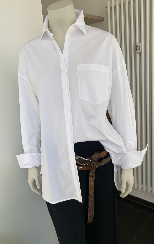 Die weiße Bluse ist ein unerlässlicher Teil jedes Kleiderschrankes 🎀 wenn frau nicht weiß was sie anziehen soll – die geht immer. Mit den richtigen Accessoires und einem tollen Schuh ob zu Jeans oder zur klassischen schwarzen Hose. Like it 💕 unser Modell ist von Steffen Schraut und hat eine doppelte Biese an der Knopfleiste und Manschetten