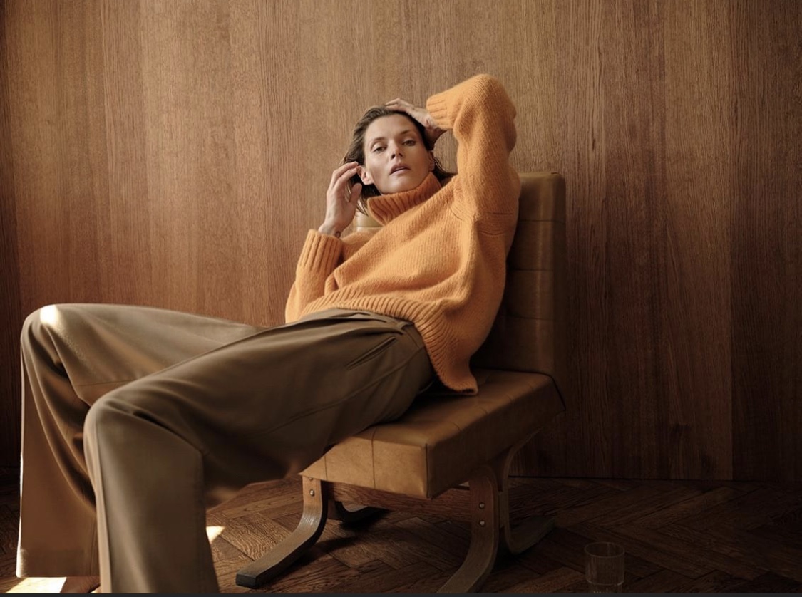 Eine wunderschöne, warme und herbstliche Kombination ist camel mit einem warmen orange. Der kuschlige Pulli und die Hose sind von Closed und passend gibt es noch Schal und Mütze.