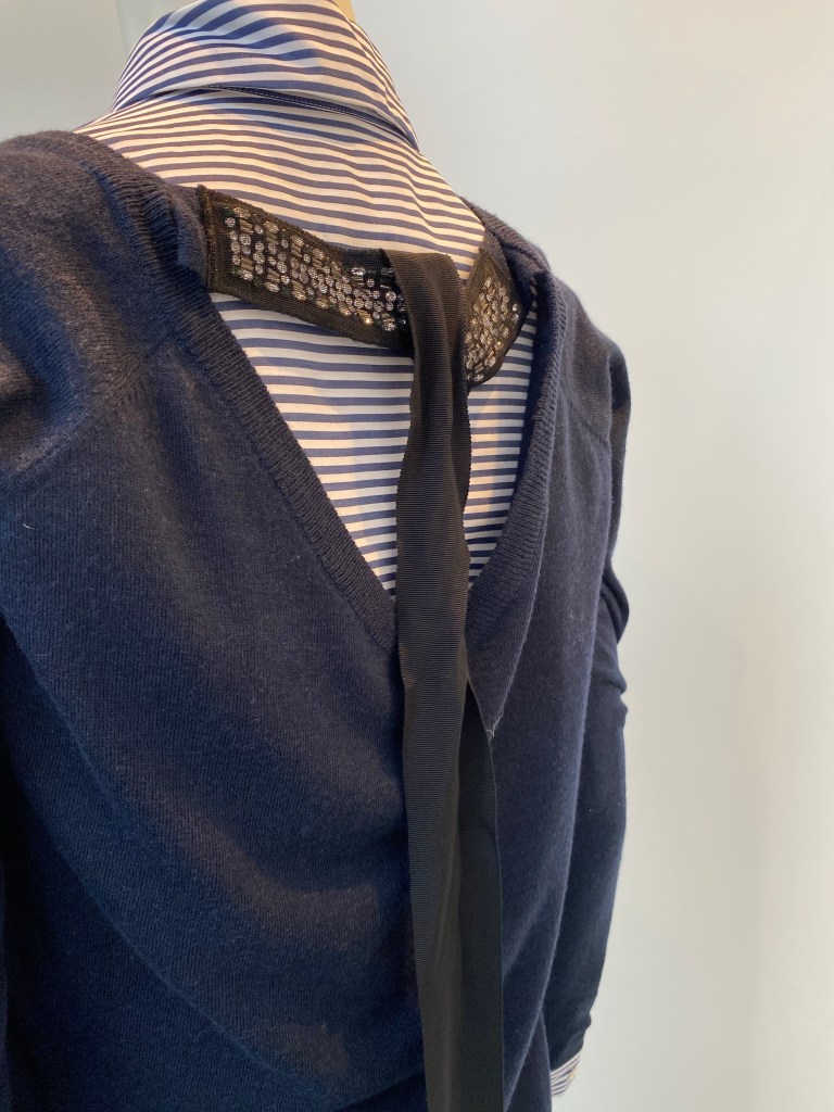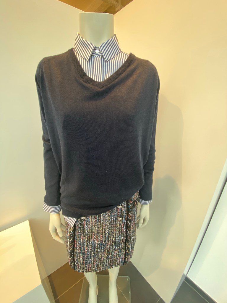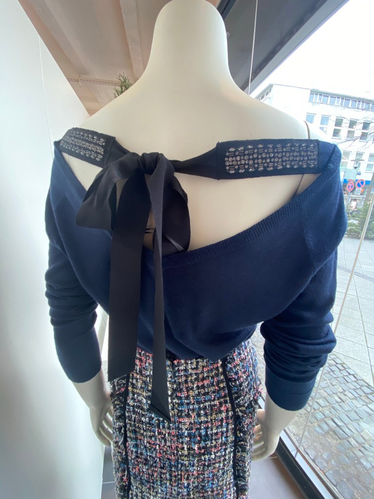 Hamburg trifft auf Chanel 🥰 der lässig geschnittene, aber trotzdem ein bisschen glamouröse Pulli rundet den Look alltagstauglich ab. Der Pulli ist mit Schnürung vorn oder hinten zu tragen, je nach Anlass und Laune