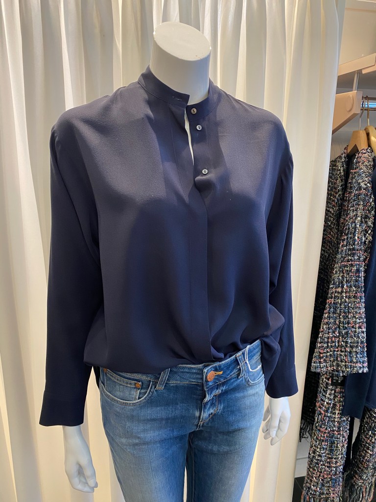 Schöne Ergänzung zu allen vorgestellten Teilen und dem halben Kleiderschrank ist die Seidenbluse von Artigiano € 159,00 statt € 319,00