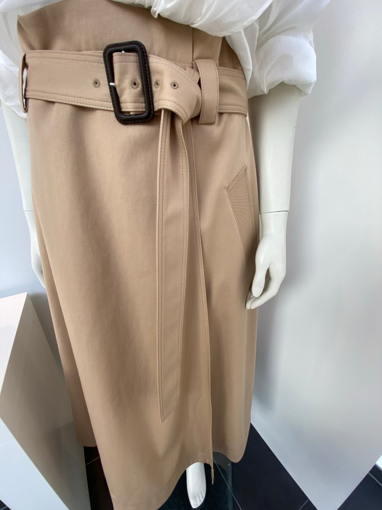 Dieser von Windsor aus Baumwolle ist gewickelt mit einem breiten Gürtel, der jederzeit durch einen anderen breiten Gürtel ersetzt werden kann, seitlich hat er zwei Einschubtaschen.