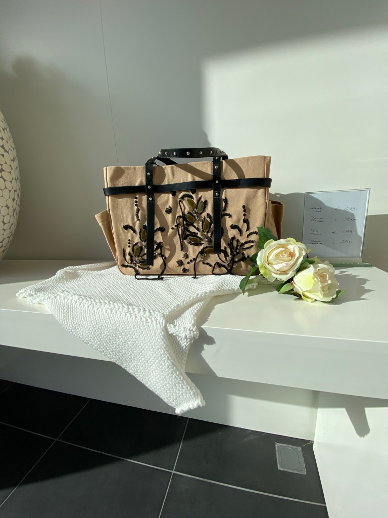 Canvas-Tasche mit Lederriemen von Dorothee Schumacher, dazu kommen noch in den nächsten Tagen die passenden Panoletten 🥰 Tasche € 250,00
