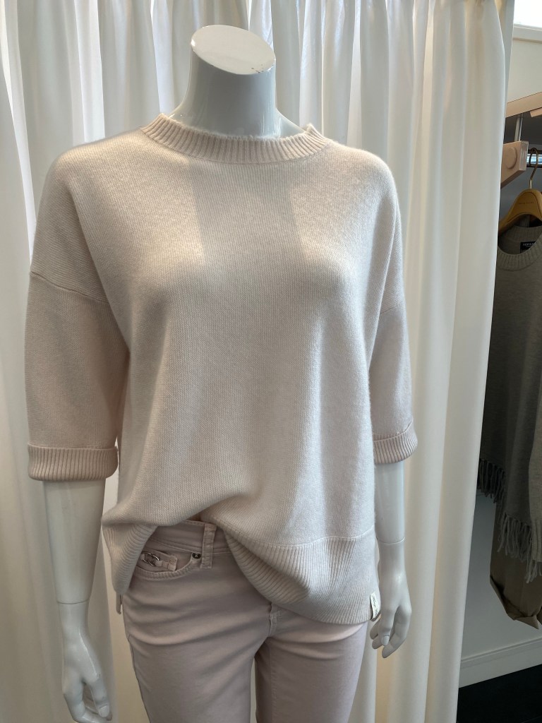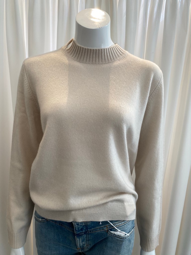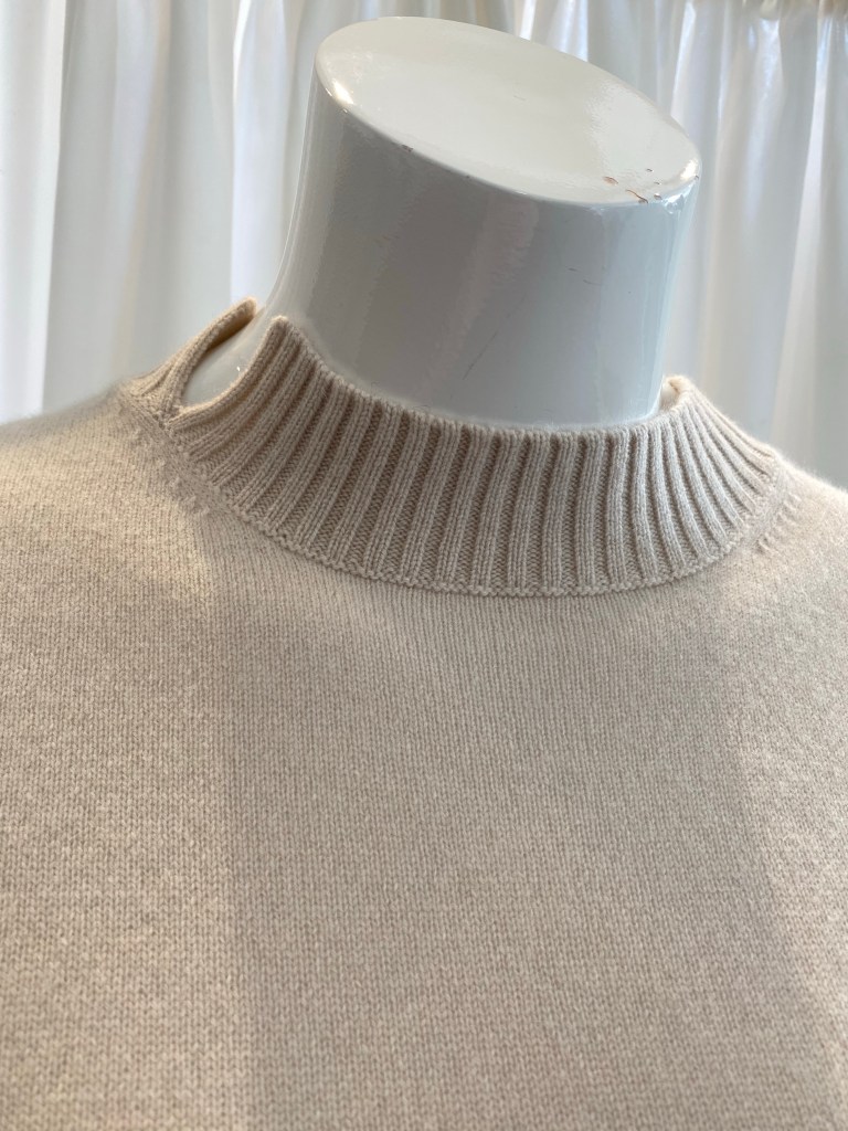 Allude Pullover reines Cashmere in creme, passend fürs ganze Jahr mit einem kleinen Schlitz am Ausschnitt, auch dieser ist als Einzelstück noch mal reduziert