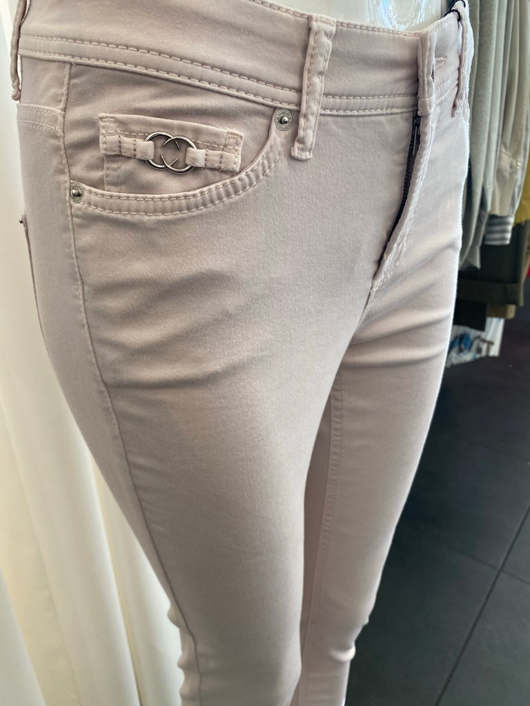 Beim Blick aus dem Fenster heute morgen hätten wir keine Jeans in rosa ausgewählt, sondern eher eine blaue Jeans, aber gestern schien noch die Sonne und die kommt wieder und dann ist Zeit für die Cambio Color-Denim, weich und bequem, „Piper“ ist ein bewährter Schnitt, der gut sitzt.