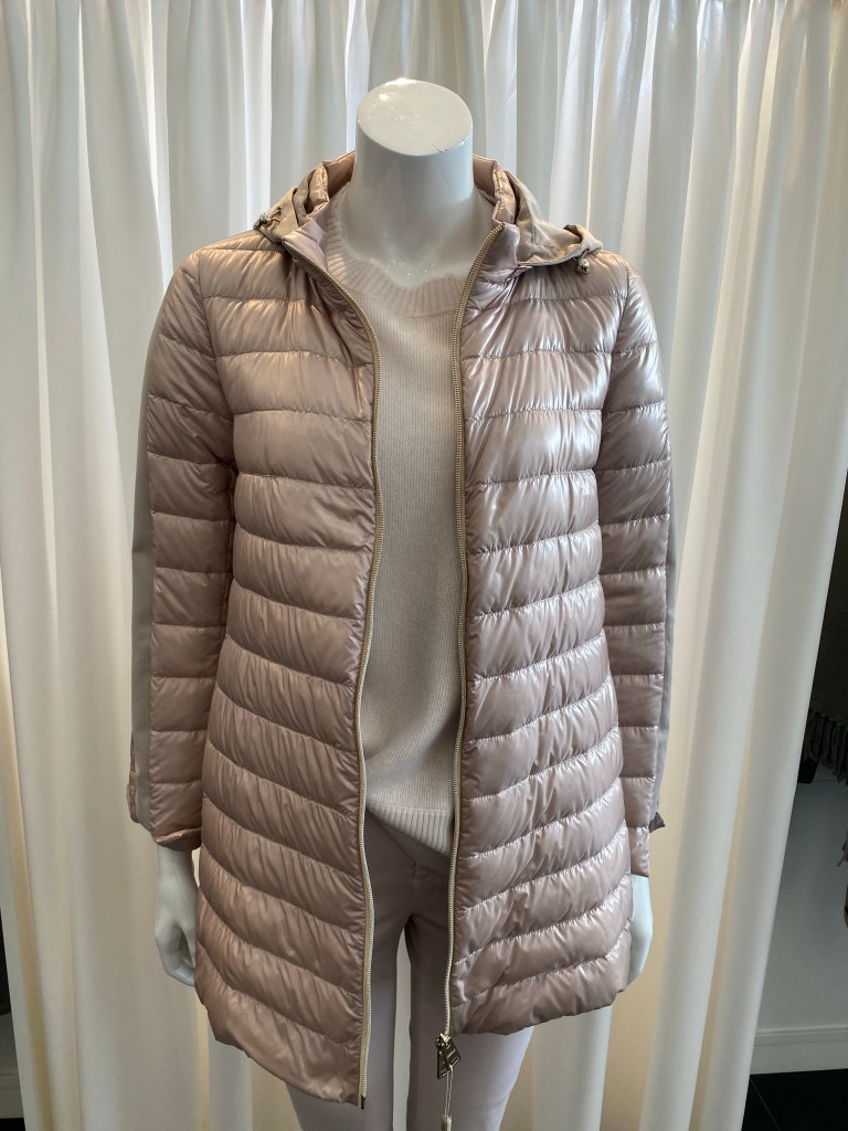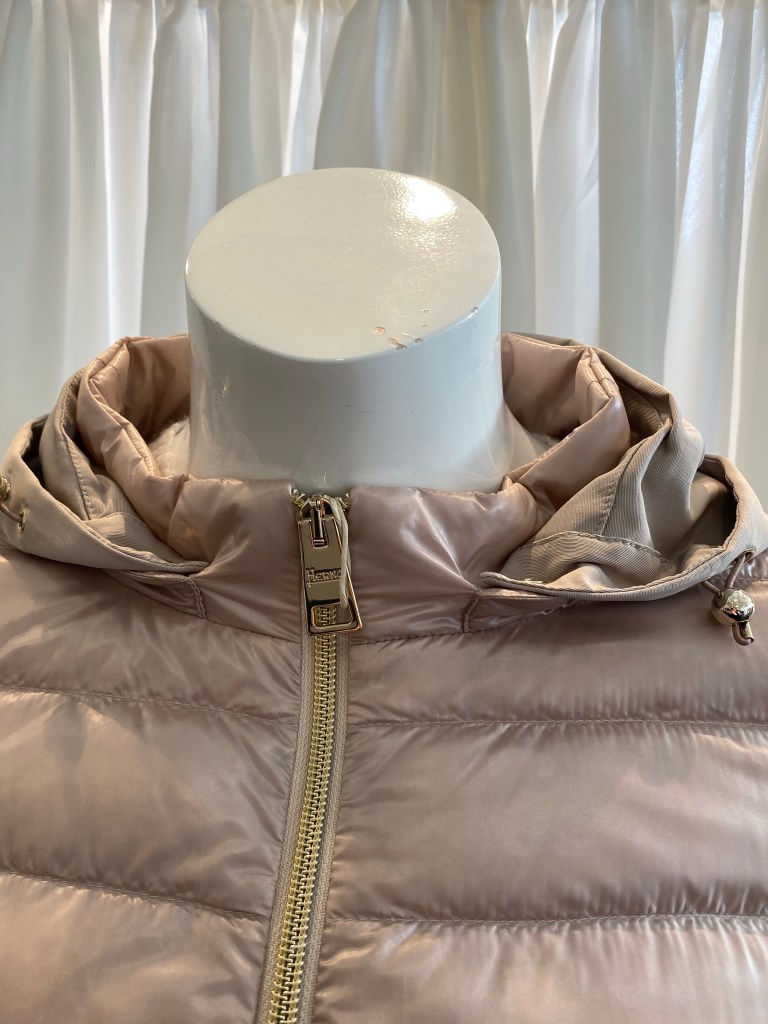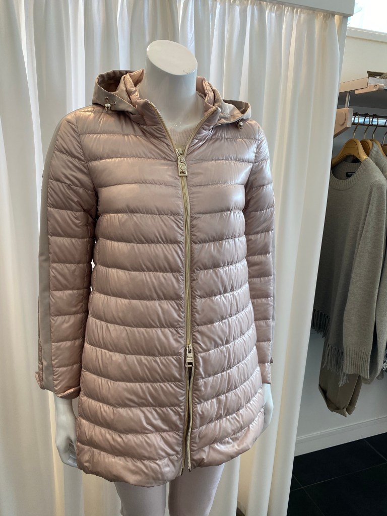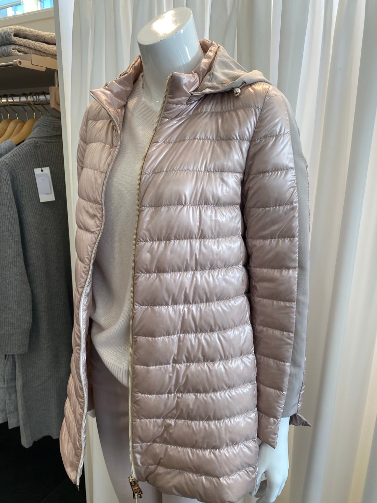 Ein leichter Herno-Mantel Daunen gefüttert, genau richtig für die Übergangszeit. Der zarte Farbton hebt die Stimmung und nach den dunklen Winterjacken und -Mänteln mal eine nette Abwechslung. Da Daunenjacken bei Herno waschbar sind, ist auch der helle Farbton kein Problem.