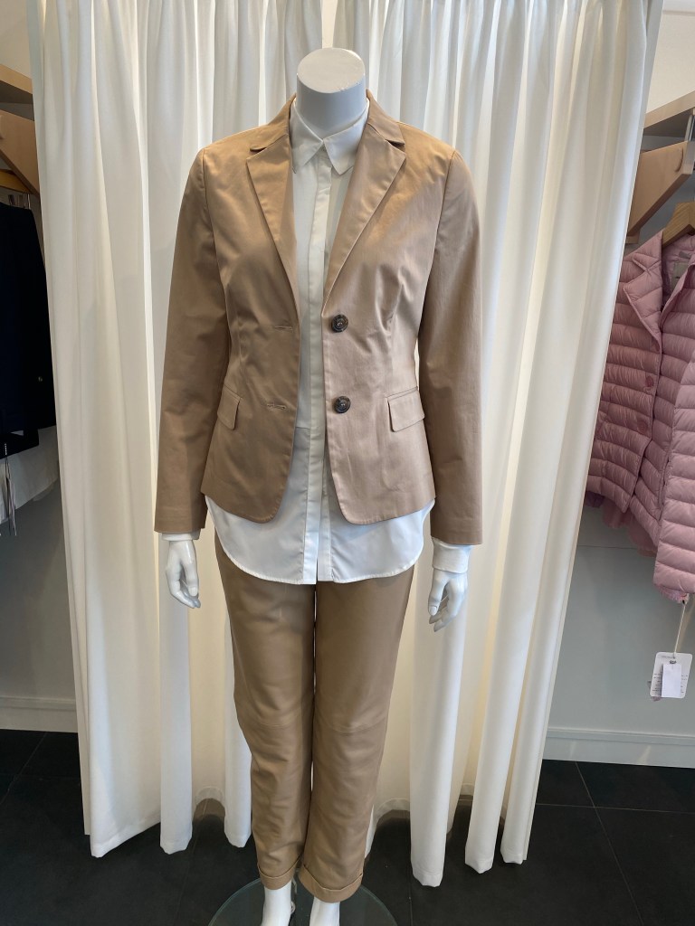 Hose und Bluse lassen sich auch gut mit einem klassischen Blazer, hier von Cappellini, kombinieren.