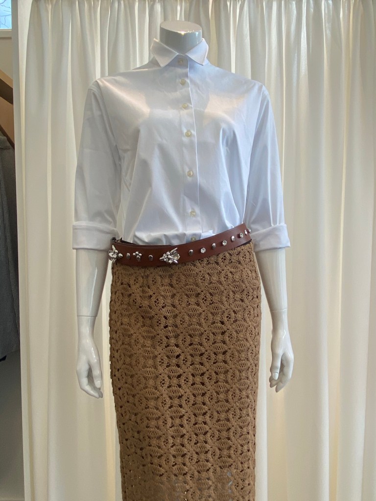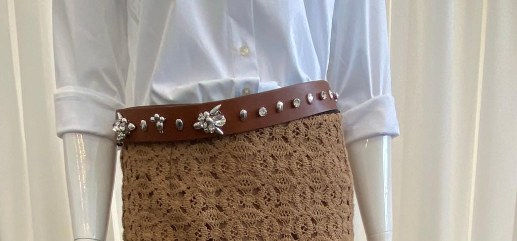 Ein dekorativer Gürtel ist eine Aufwertung für den Kleiderschrank! Dieser Gürtel ist Ihnen schon ein paar mal in den Newslettern begegnet und lässt sich immer neu einsetzen und macht aus einem schlichten Outfit ein spannendes. Gerne auch ganz gegensätzlich kombiniert.