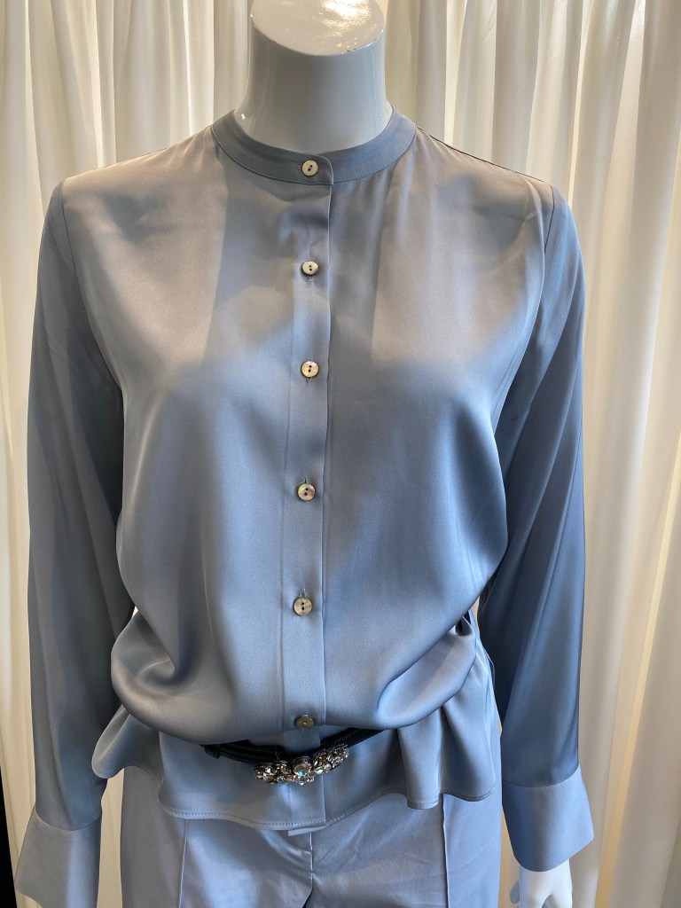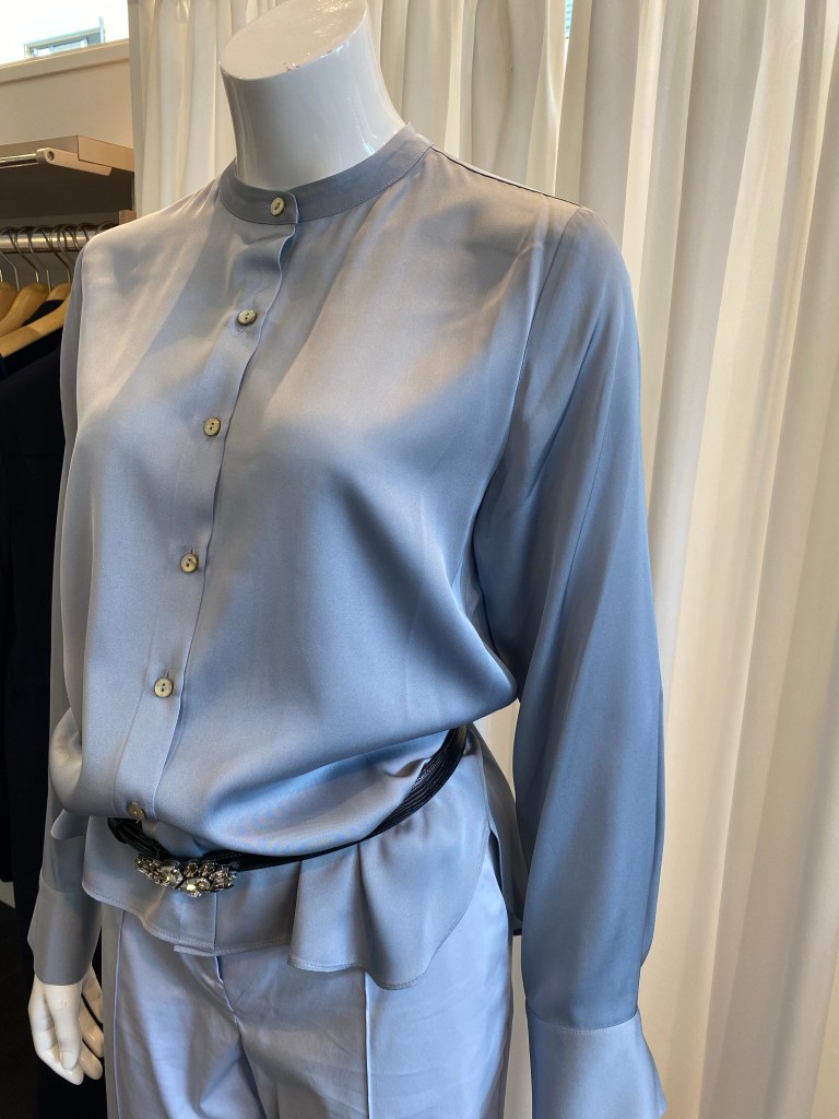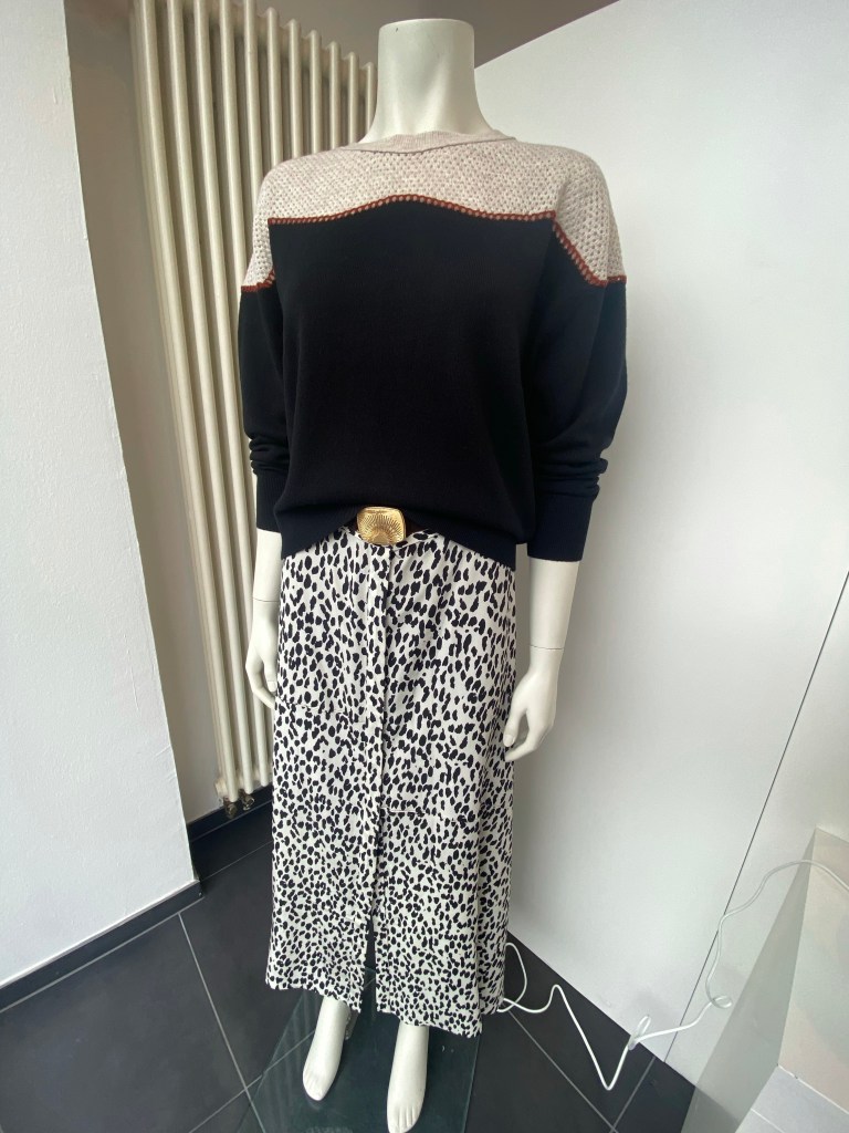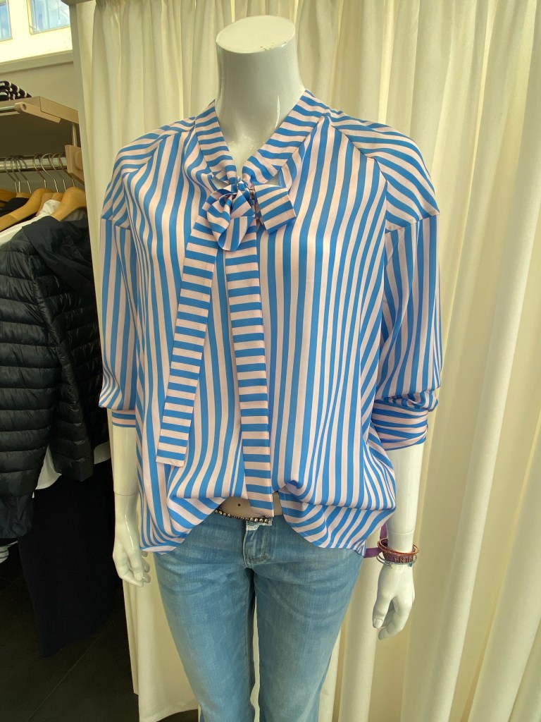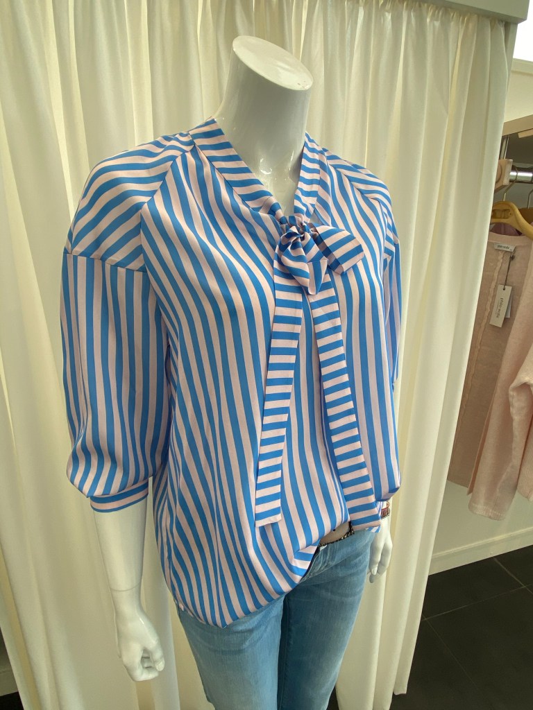 Animalprint, im besonderen Leoparden, gibt es immer wieder und in zahlreichen Varianten, aber nicht immer sieht es wertig und edel aus. Diese Bluse von Kimmich vereint beides und marine mit weiß ist eine schöne farbliche Alternative und ergänzt den blauen Anzug perfekt. Die Bluse ist aus Seide mit Elasthan und die Schleife kann auf vielfältige Art gebunden werden.