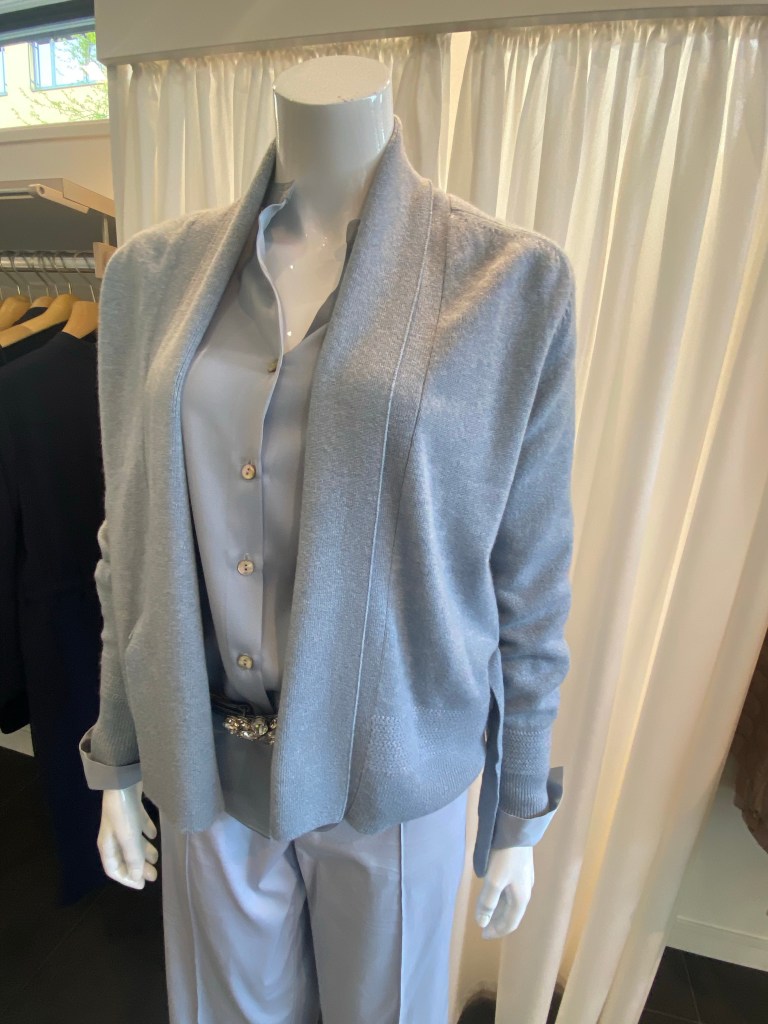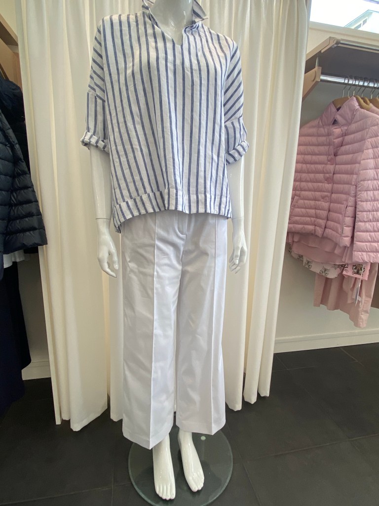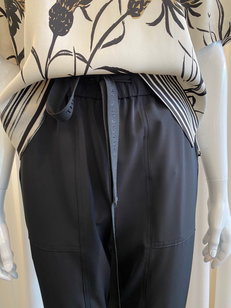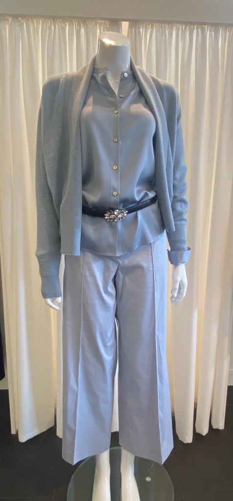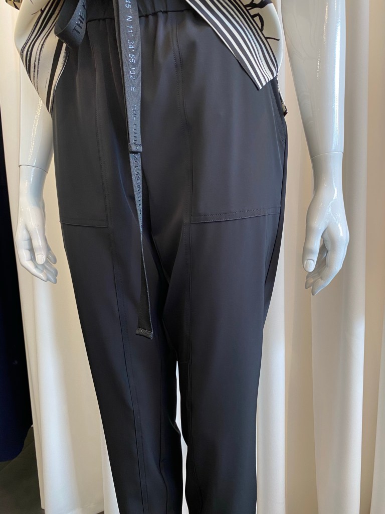Die Hose hat einen ganz lässigen Schnitt, mit zwei Bundfalten, seitlichen Einschubtaschen und wird gekrempelt. Wir haben uns für dunkelblau entschieden, mal nicht klassisch schwarz, sondern klassisch marine 😉, aber der Schnitt ist schon extravagant genug.