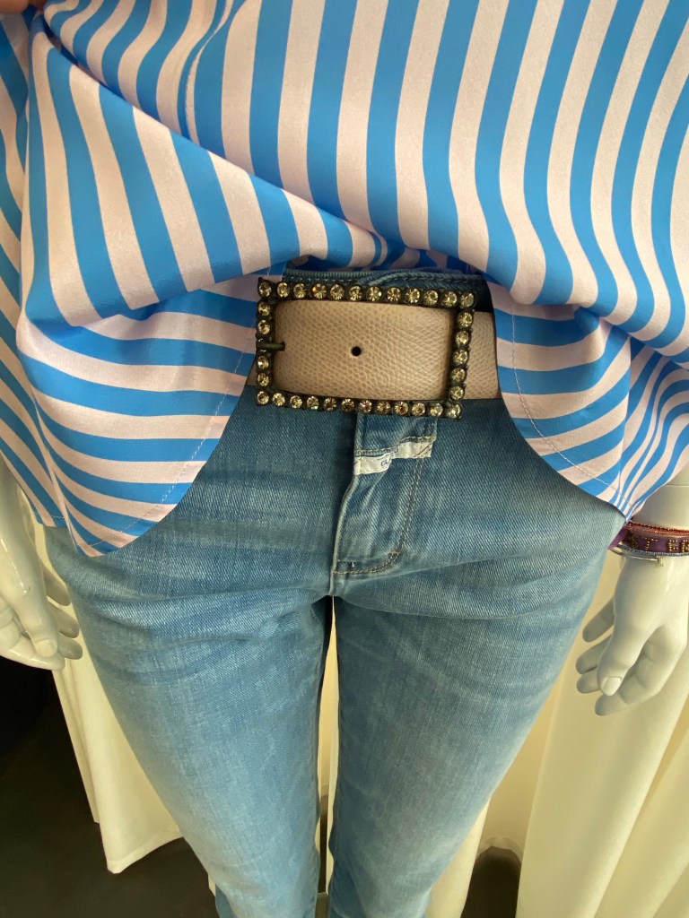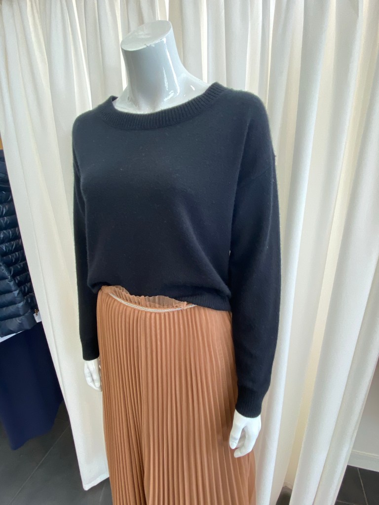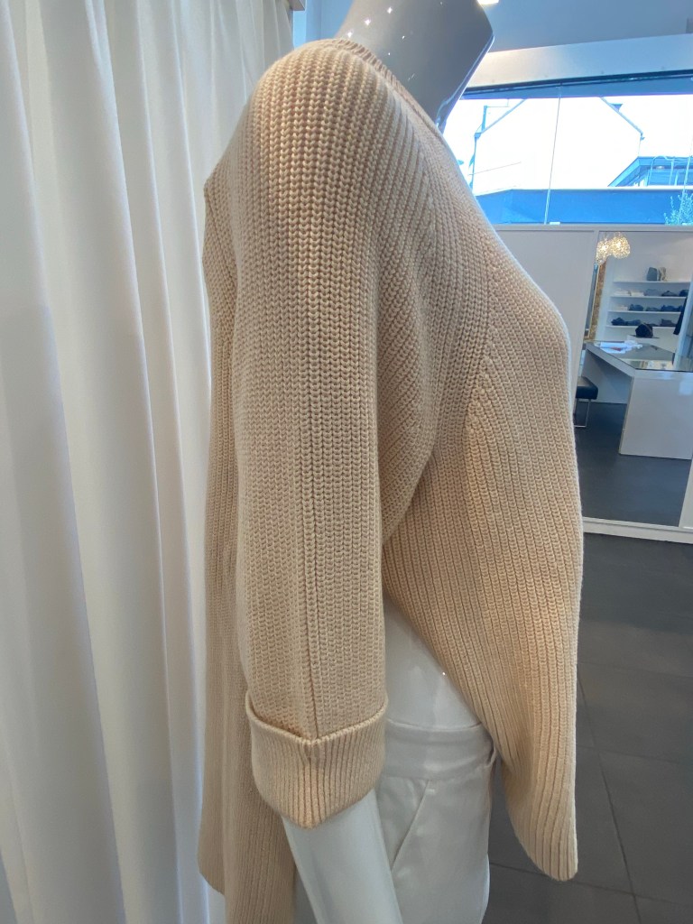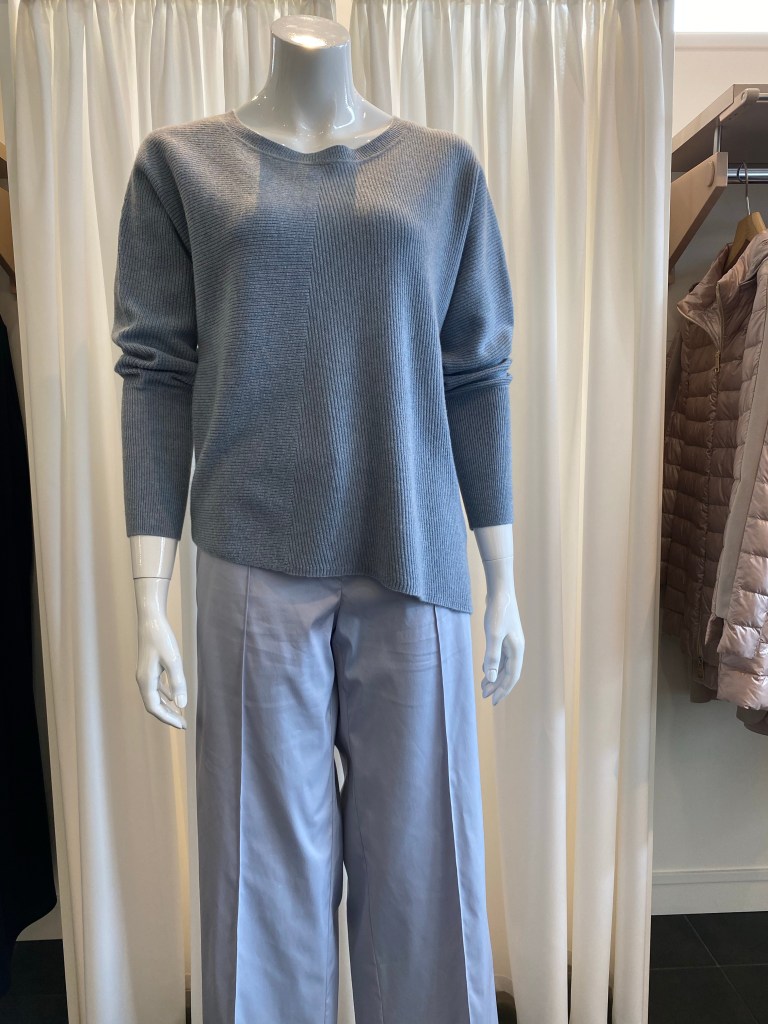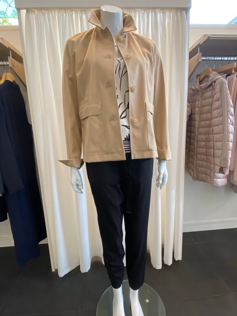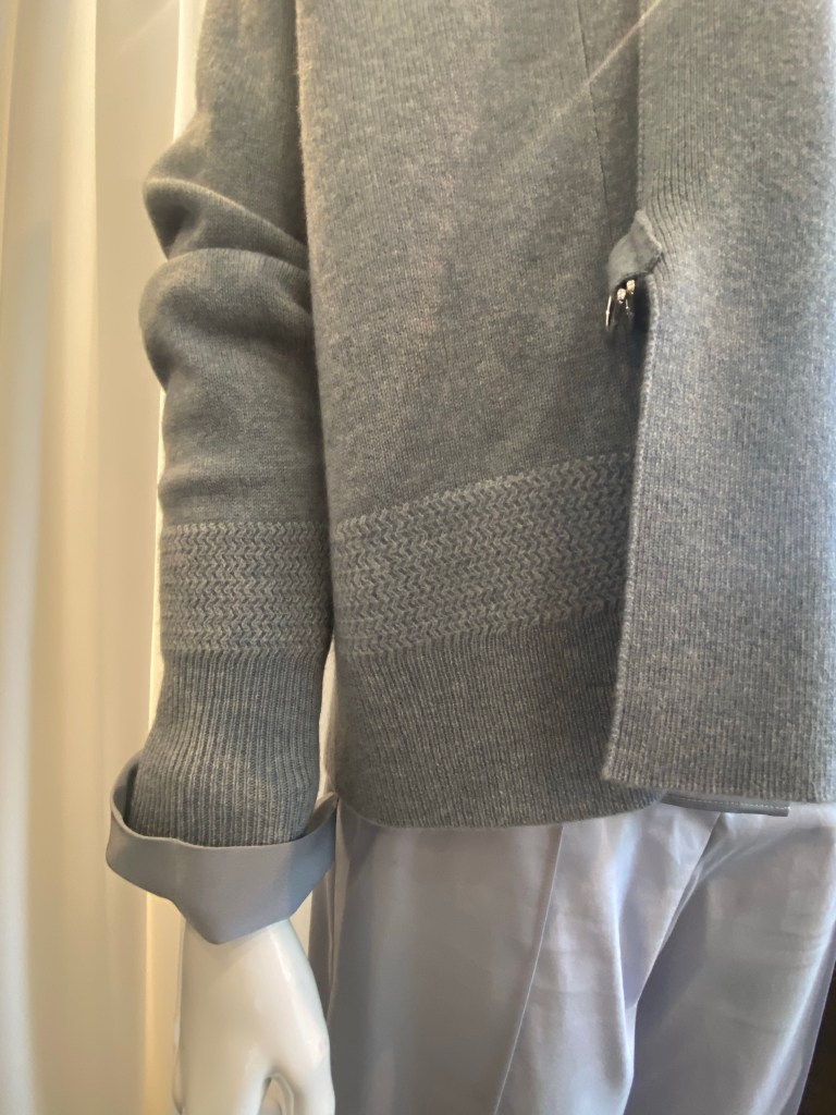 Die Hose hat einen ganz lässigen Schnitt, mit zwei Bundfalten, seitlichen Einschubtaschen und wird gekrempelt. Wir haben uns für dunkelblau entschieden, mal nicht klassisch schwarz, sondern klassisch marine 😉, aber der Schnitt ist schon extravagant genug.