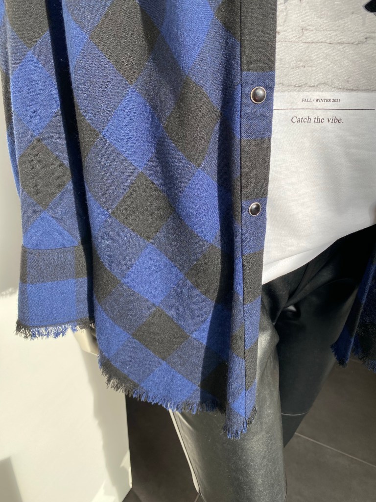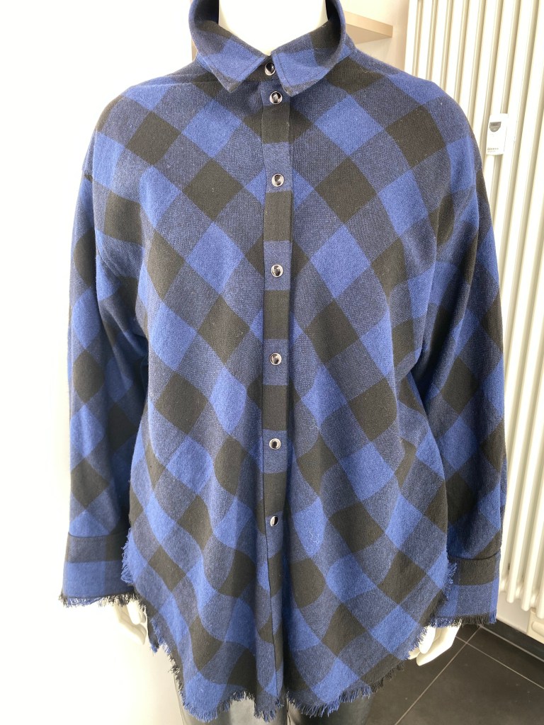 Ein langes Wollhemd im Karo marine/schwarz zu einer Lederleggin ruft die Rock n Rollerin in Ihnen hervor