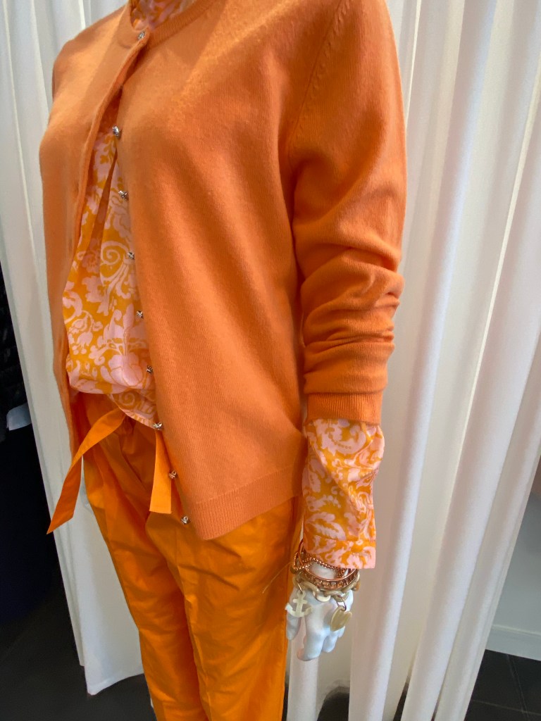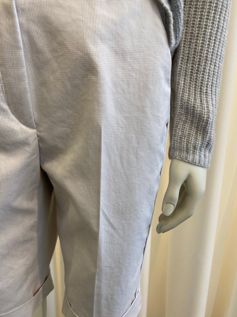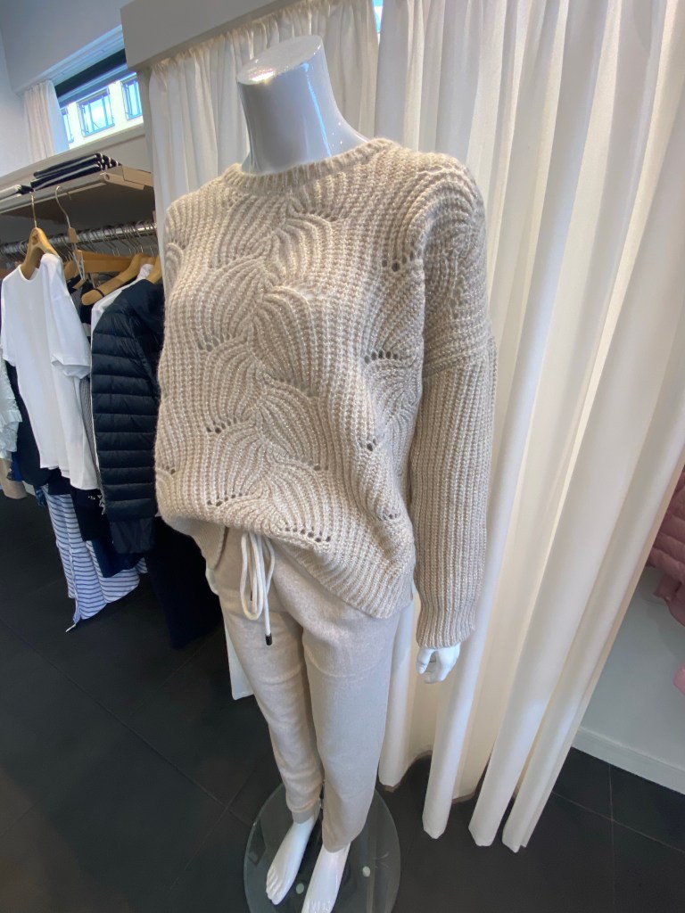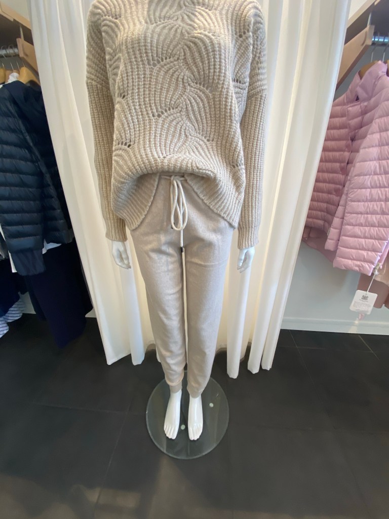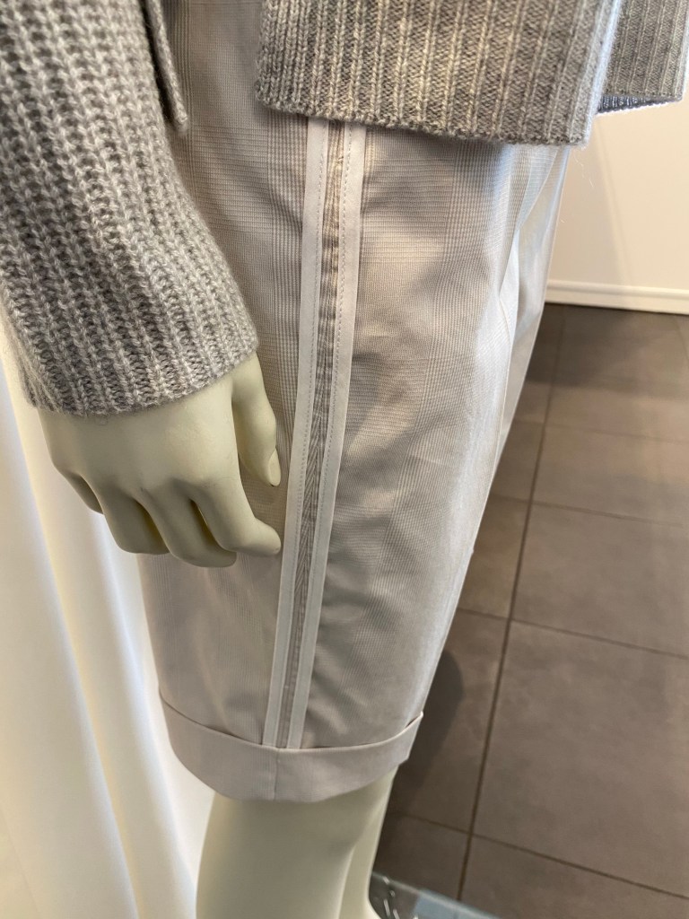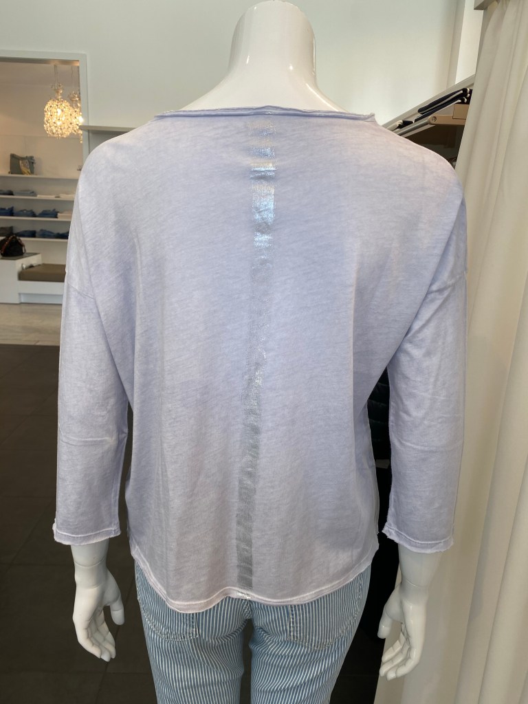 Grauer Strick mit ganz viel weißem Anteil wird zu silber und ist dann gar nicht trist und grau. Dazu dann noch kuschliges Cashmere locker gestrickt mit einem V-Ausschnitt und Sie haben einen zeitlosen Sommerpulli, den Sie vielseitig einsetzen können.