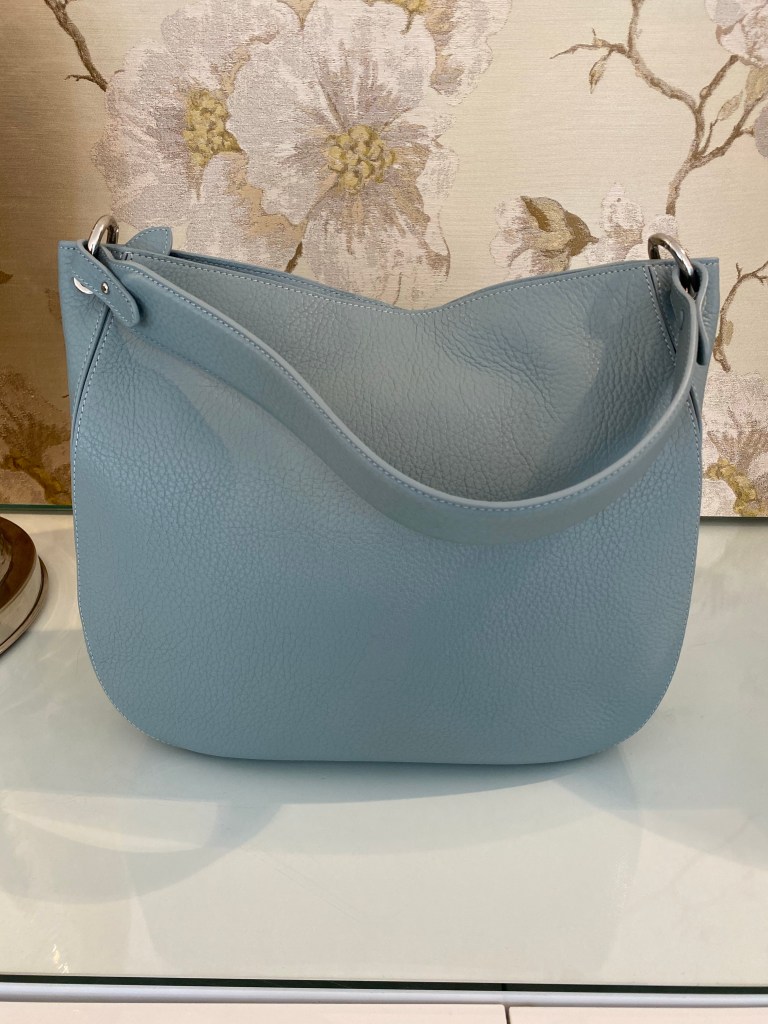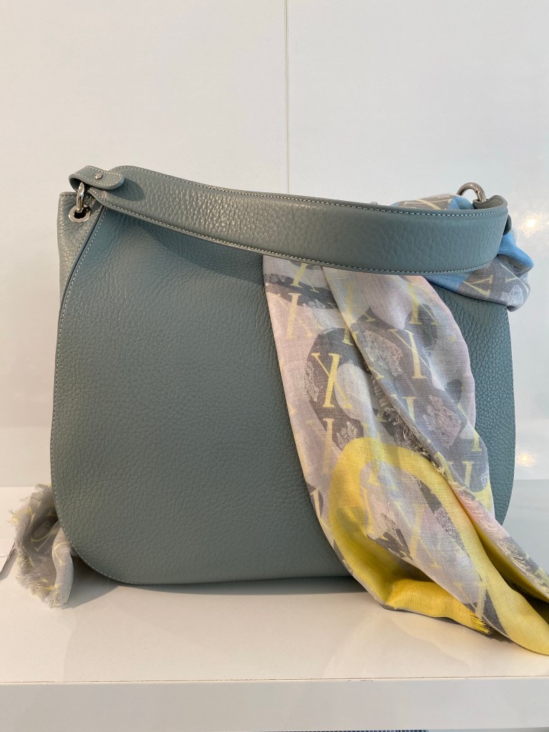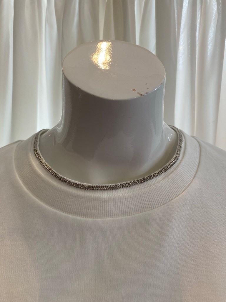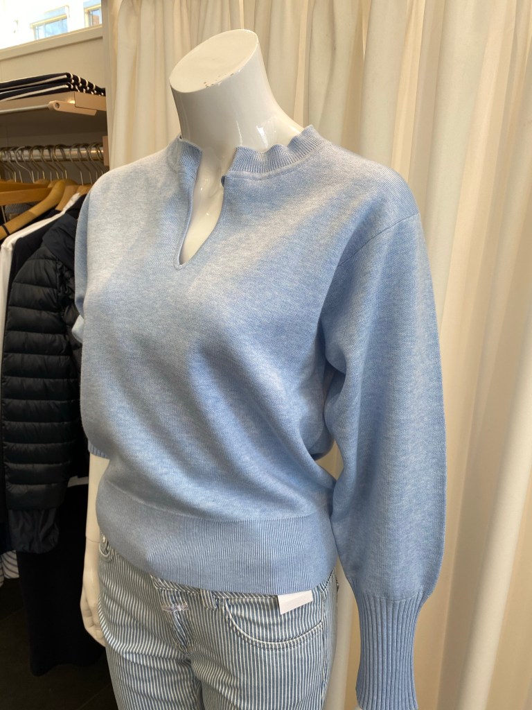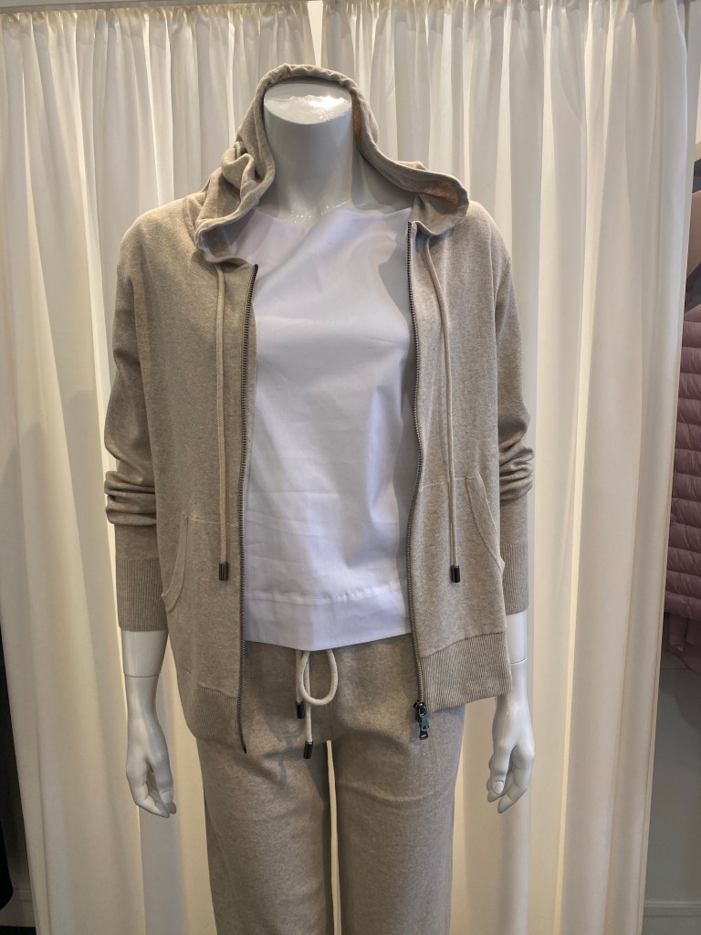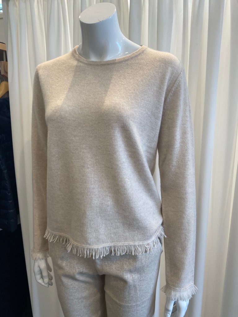 Grauer Strick mit ganz viel weißem Anteil wird zu silber und ist dann gar nicht trist und grau. Dazu dann noch kuschliges Cashmere locker gestrickt mit einem V-Ausschnitt und Sie haben einen zeitlosen Sommerpulli, den Sie vielseitig einsetzen können.