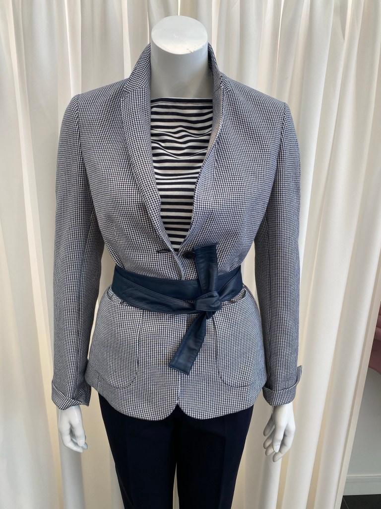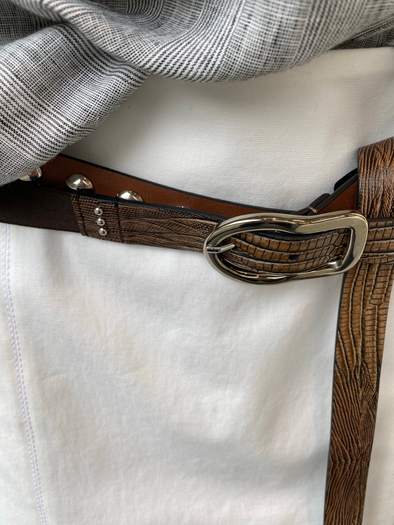 Der Gürtel von Dorothee Schumacher wird doppelt gewickelt und ist in zwei unterschiedlichen Lederarten und -farben.