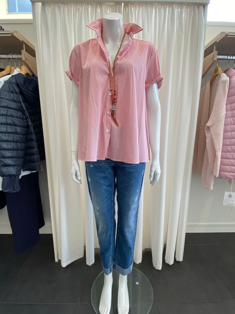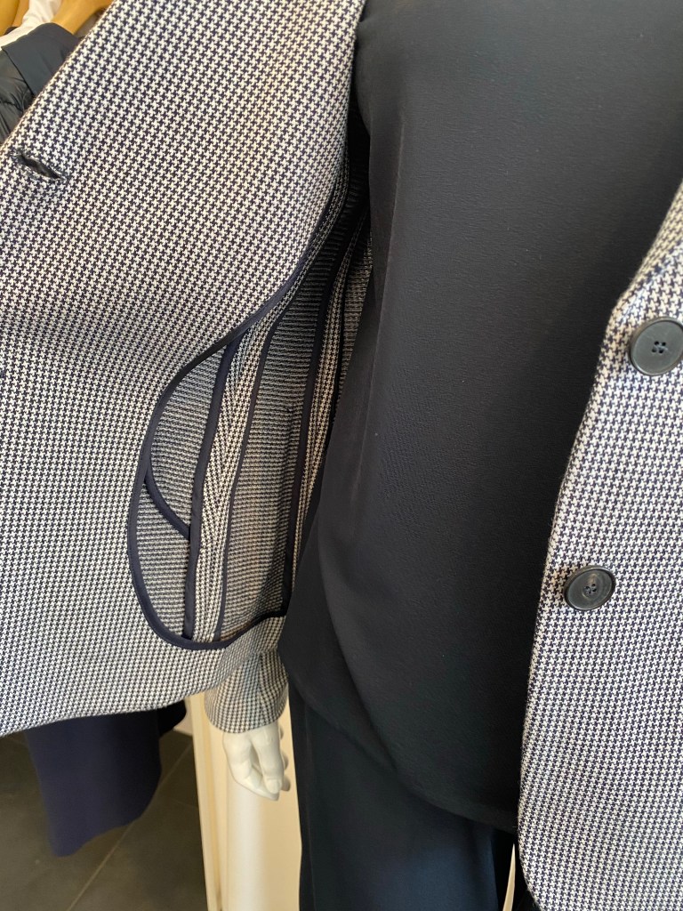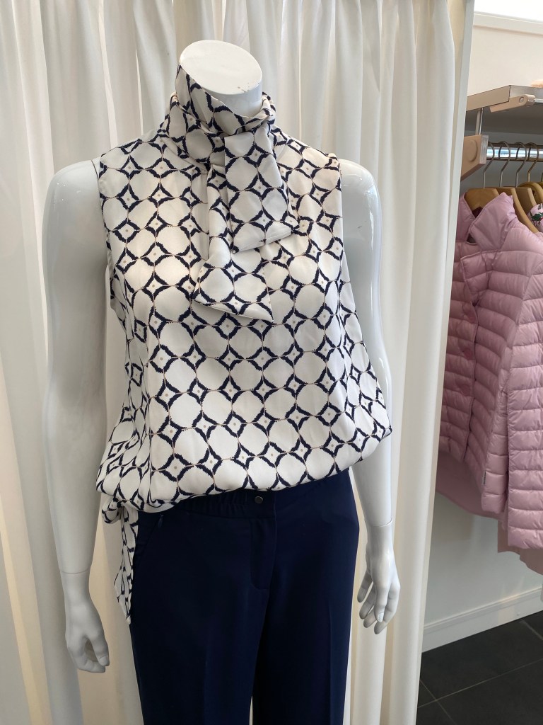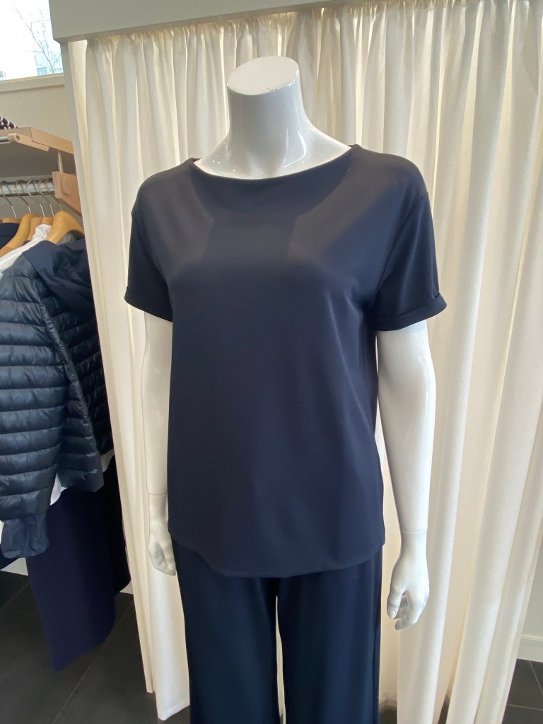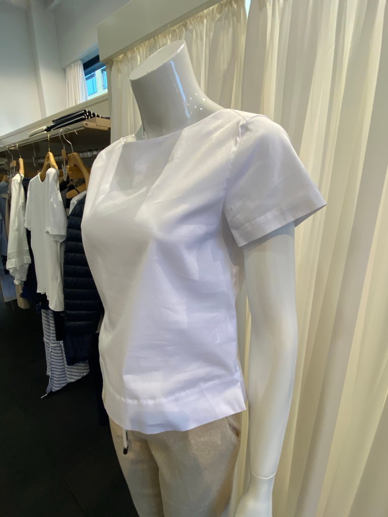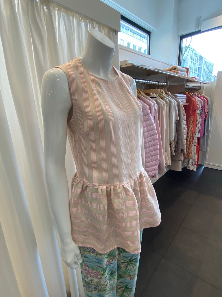Um dem Rock auch sportlich zu kombinieren und auch passend für die Bermuda, möchten wir noch dieses Top in den Newsletter aufnehmen. Sportliches Piquee und feminine Details bilden einen guten Kontrast.