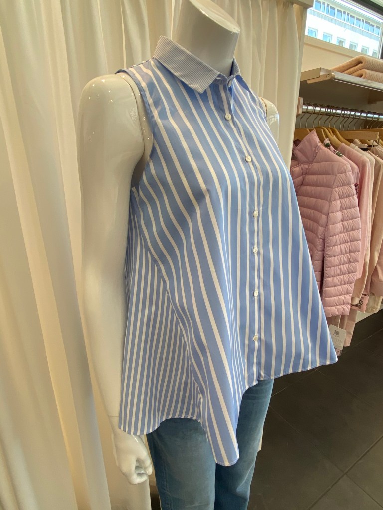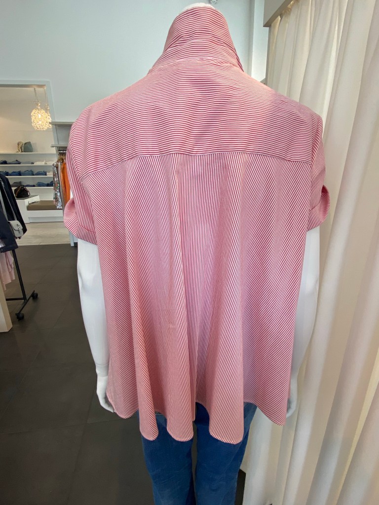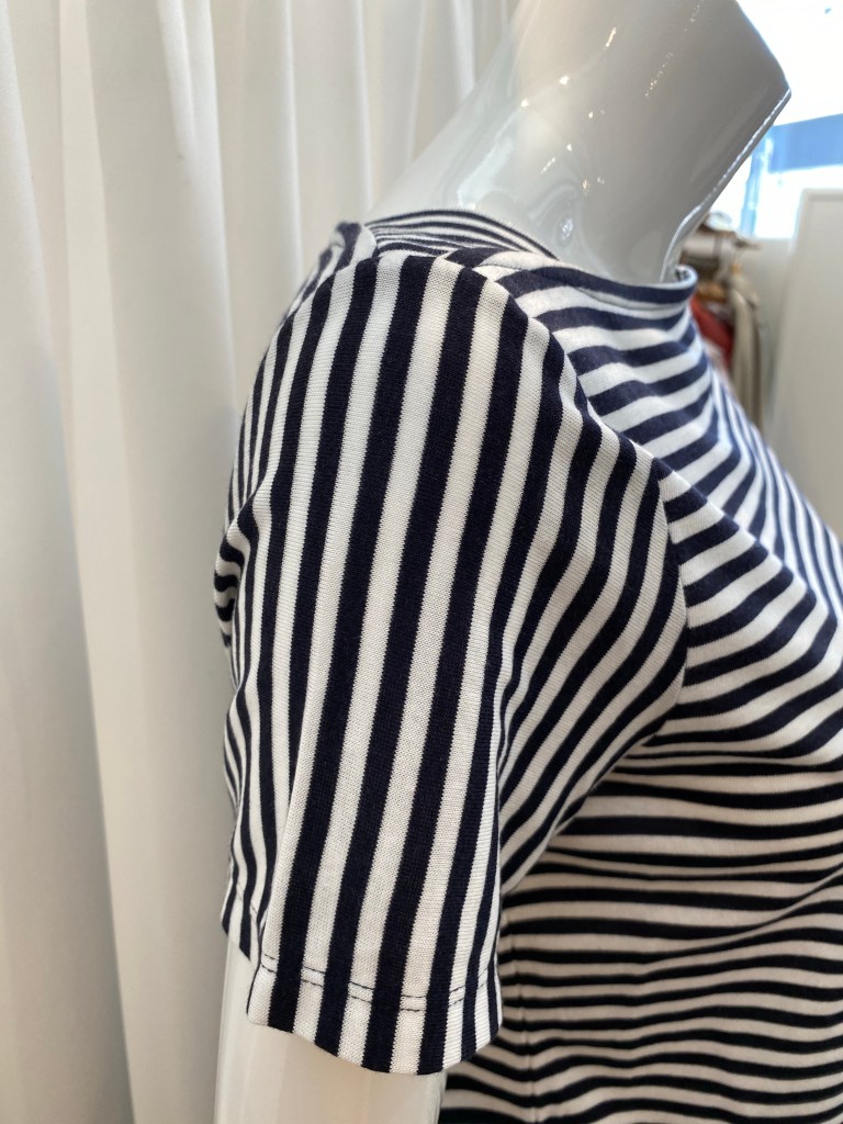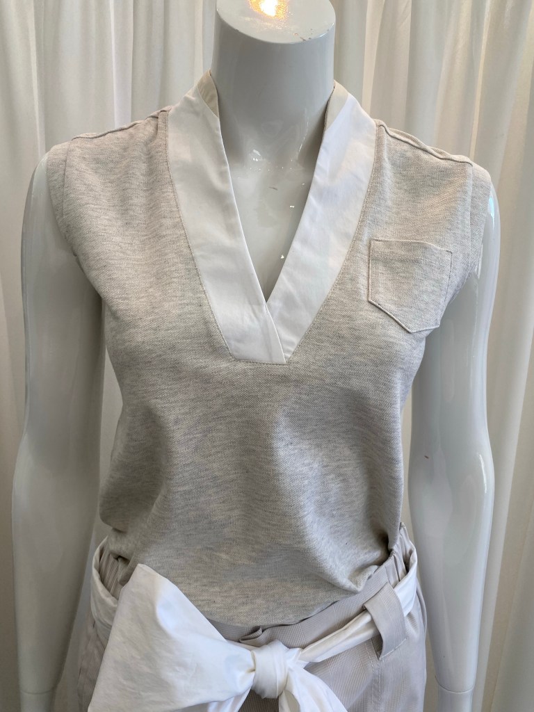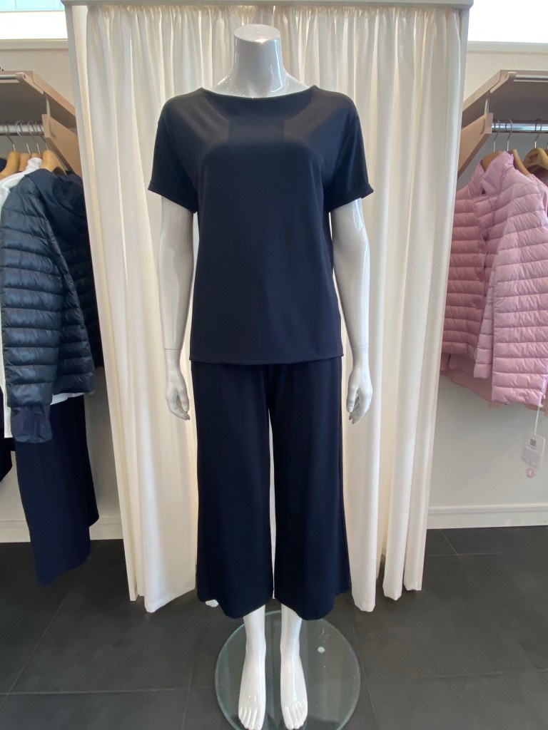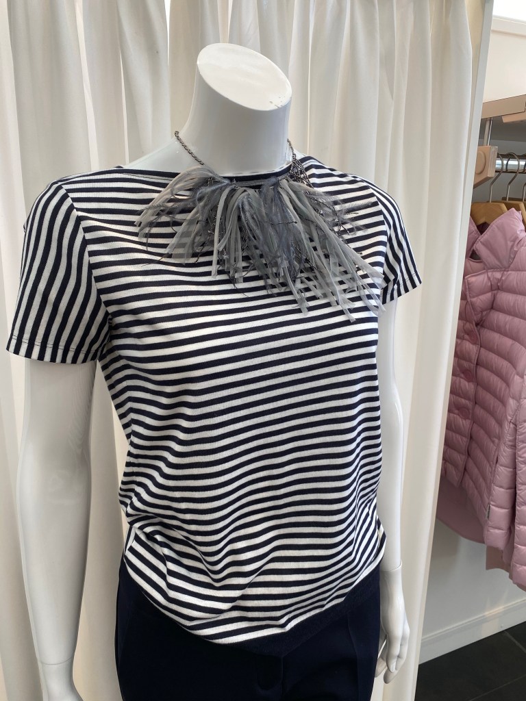 Um dem Rock auch sportlich zu kombinieren und auch passend für die Bermuda, möchten wir noch dieses Top in den Newsletter aufnehmen. Sportliches Piquee und feminine Details bilden einen guten Kontrast.