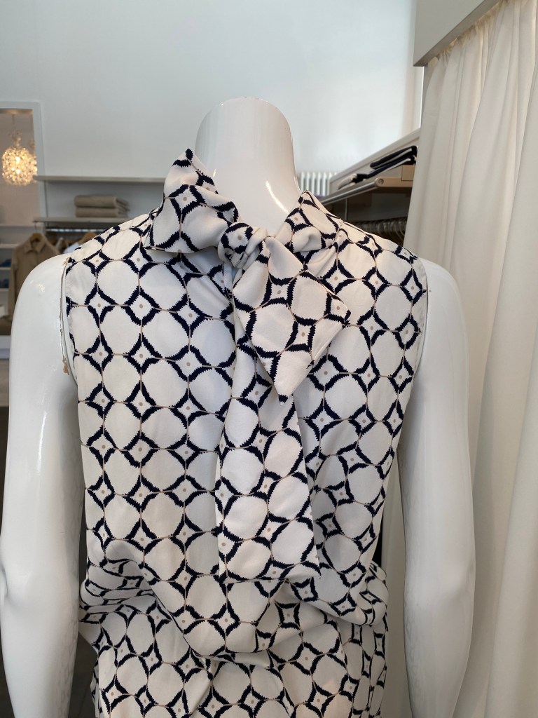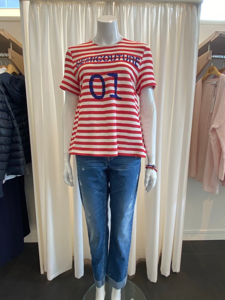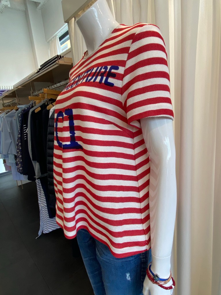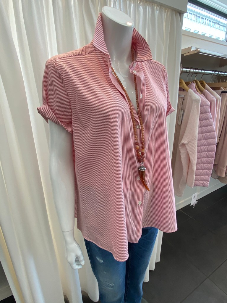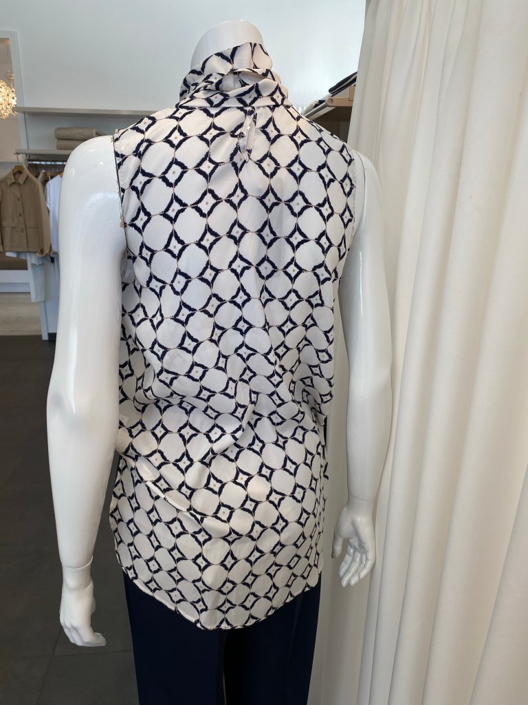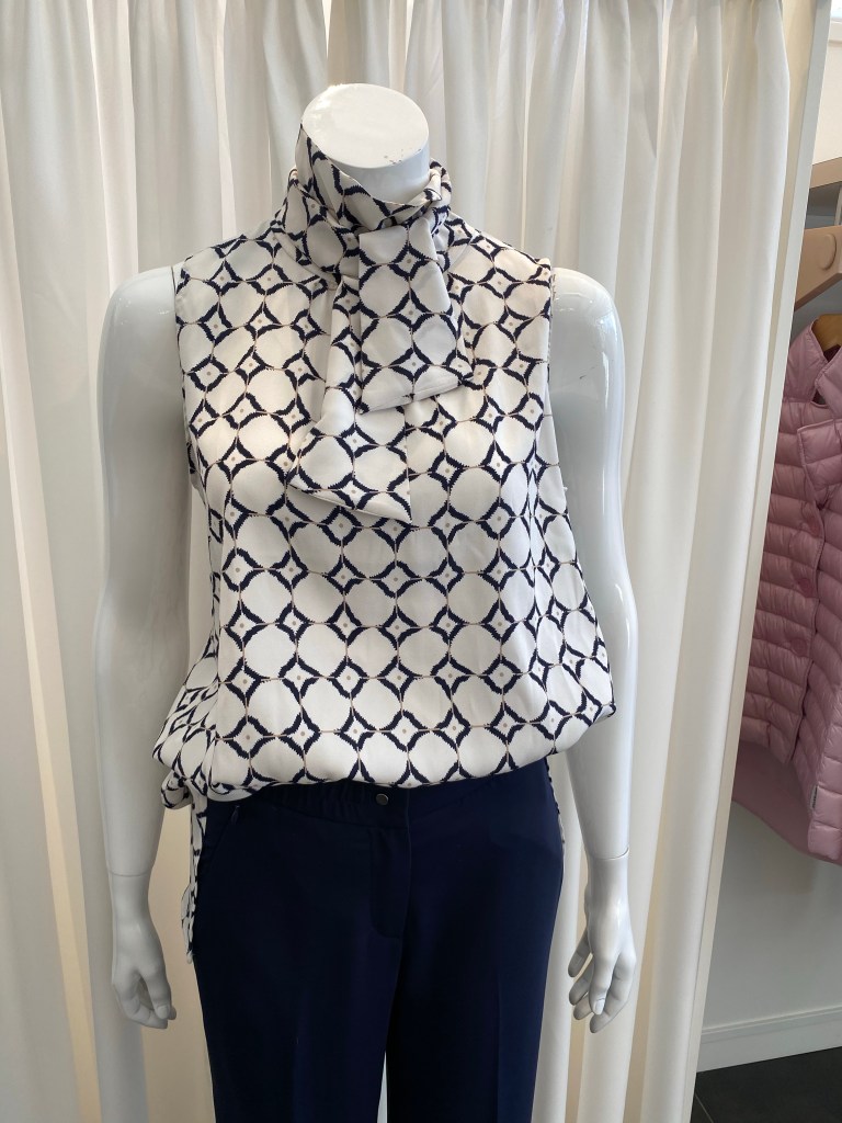 Um dem Rock auch sportlich zu kombinieren und auch passend für die Bermuda, möchten wir noch dieses Top in den Newsletter aufnehmen. Sportliches Piquee und feminine Details bilden einen guten Kontrast.