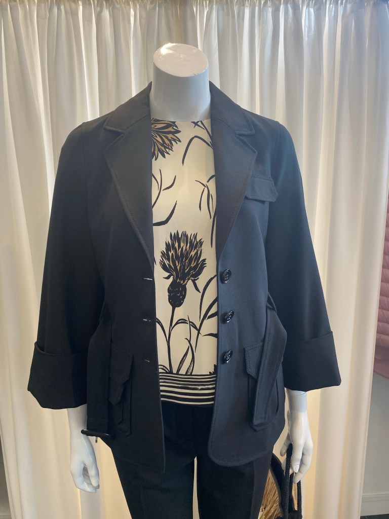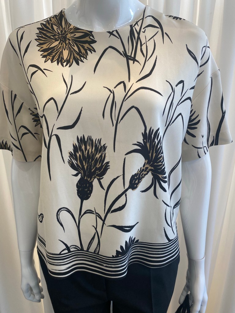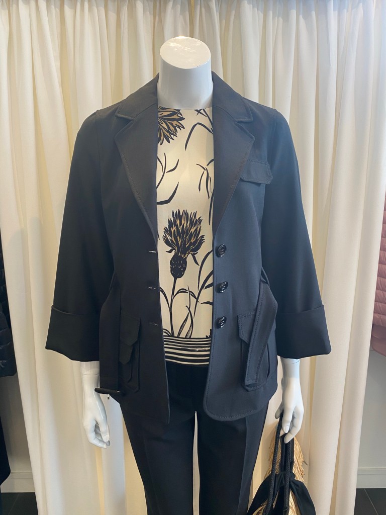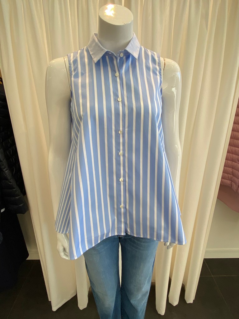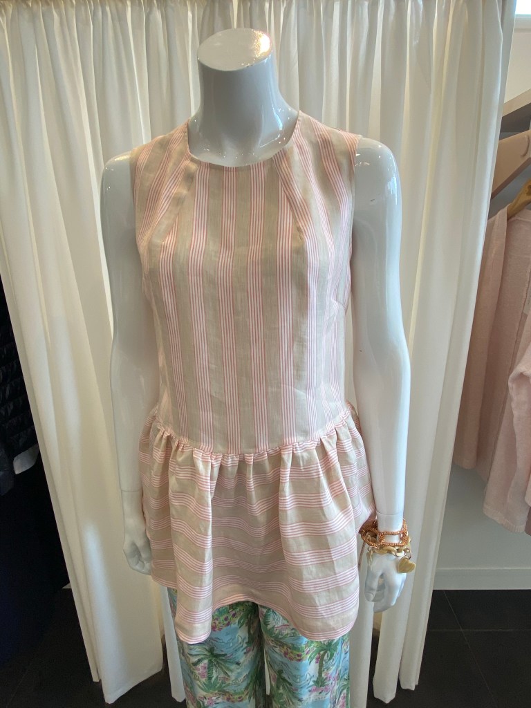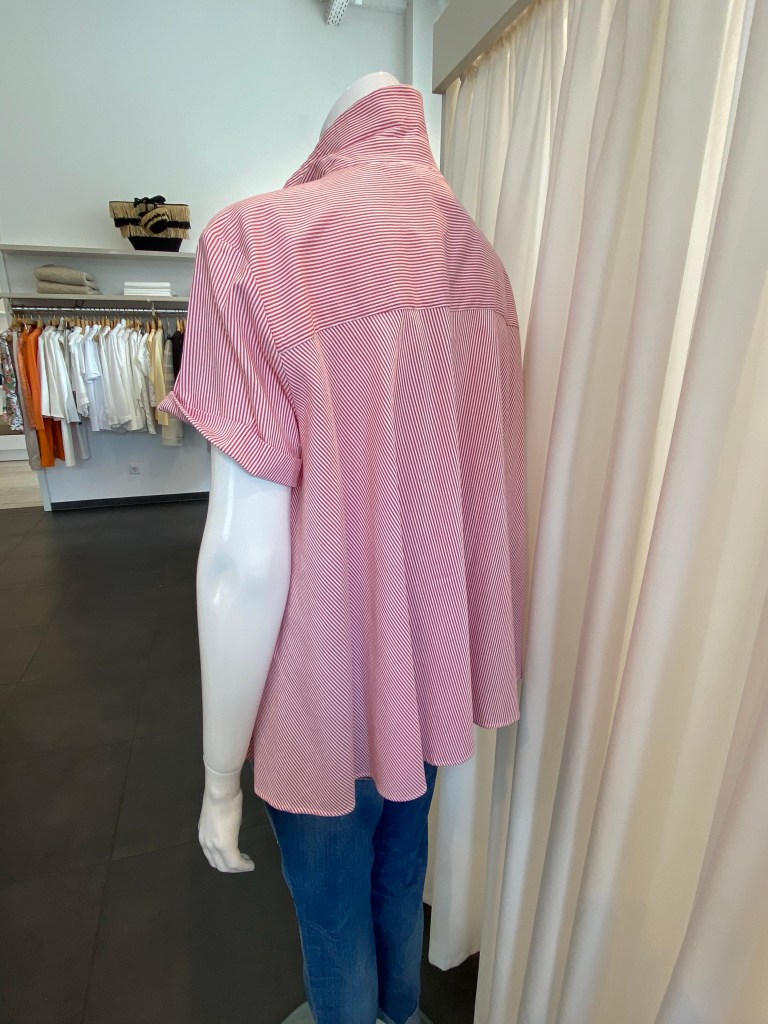 Um dem Rock auch sportlich zu kombinieren und auch passend für die Bermuda, möchten wir noch dieses Top in den Newsletter aufnehmen. Sportliches Piquee und feminine Details bilden einen guten Kontrast.