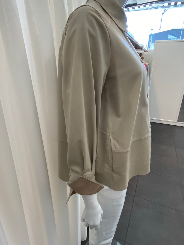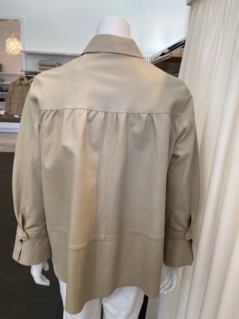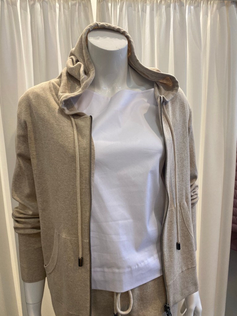 Am Rücken wiederholt sich das Material der Kapuze als Anhängsel, für die Lagen-Look-Optik.